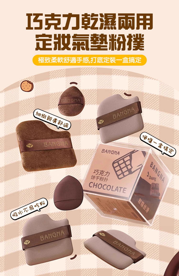 內容物:一盒6入【氣墊粉撲x3、絨粉撲x1、指尖氣墊粉撲x1、指尖絨粉撲x1】