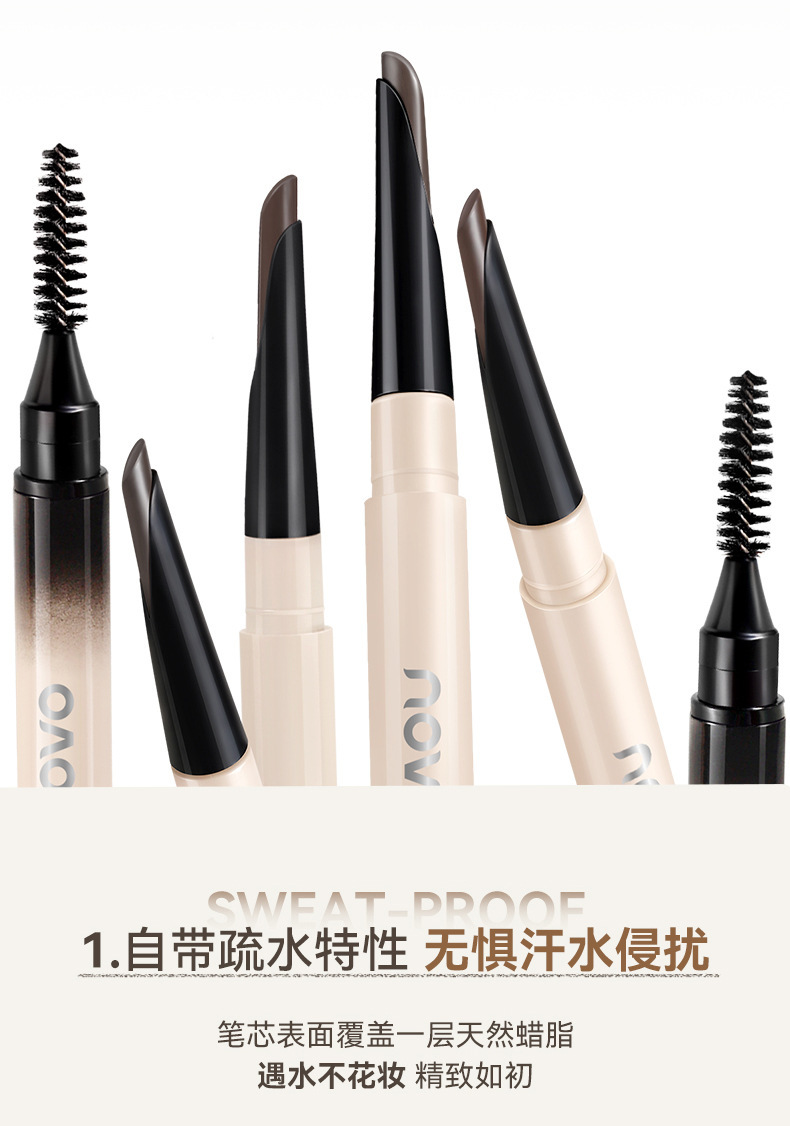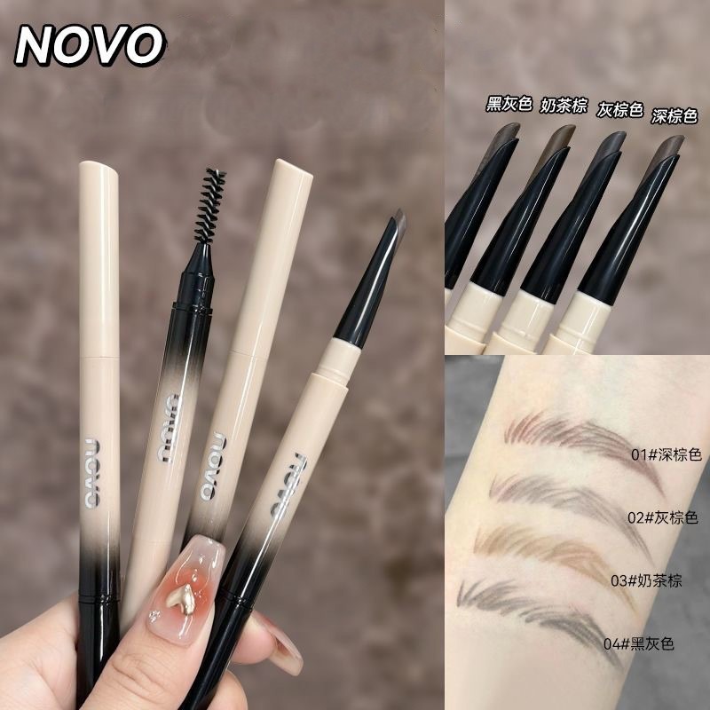 Novo眉筆刀鋒刻畫眉筆 二合一眉筆眉刷 極細 防水 不暈染 持久不脫色 超細頭 新手平價 旋轉刷頭眉筆 旋轉眉筆
