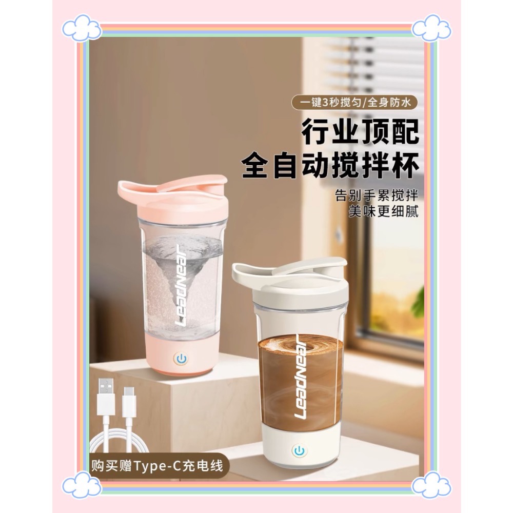全自動咖啡杯☕️ 奶昔杯 高蛋白杯 膠原蛋白 五穀粉末 牛奶杯🥛電動充電🔋款帶刻度便攜式豆漿隨手杯 搖搖杯 運動 健身杯