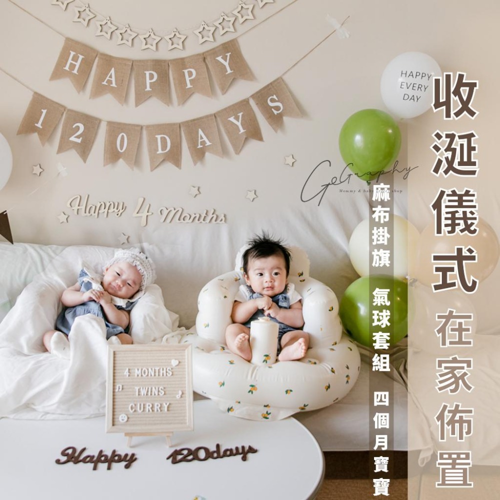 💛 商品款式:HAPPY120DAY麻布拉旗/原木色萬用布牌搭配組/木製毛氈字母拼字版(卡其)