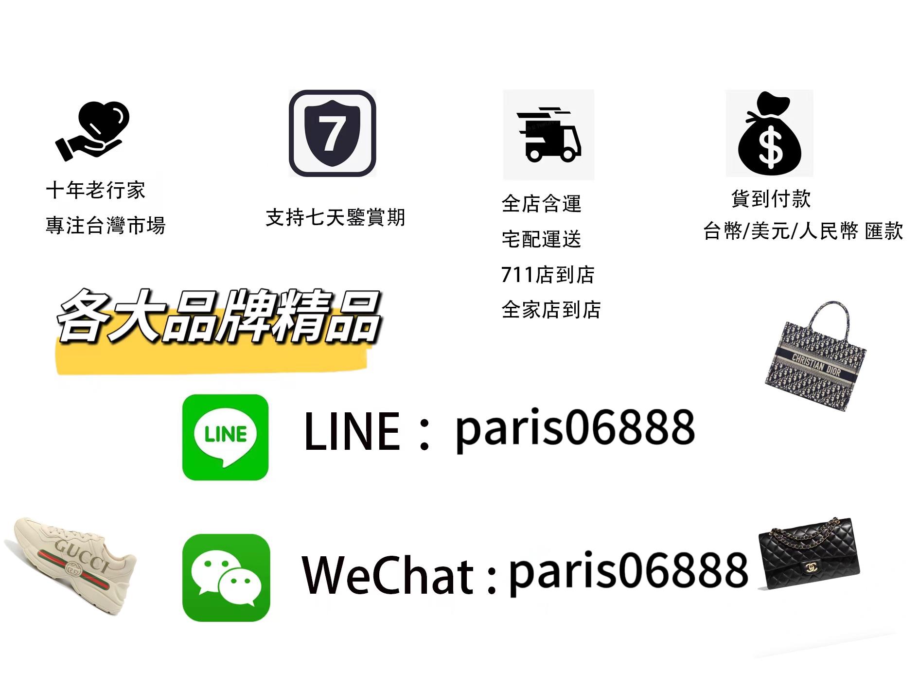 <p>----------- 公告-------------</p><p><br /></p><p>📢更多精美款式請加LINE/WeChat: paris06888,歡迎加入</p><p><br /></p><p><br /></p><p><br /></p><p>🏪本賣場經營Hermes、Chanel、Lv、Dior、Gucci等各大品牌包包、服飾、首飾等商品,賣場沒有的款式歡迎拿圖詢價唷~</p><p><br /></p><p><br /></p><p><br /></p><p>🙋🏻‍♀️闆娘從事這個行業10年,資深誠實老行家,信任我可直接購買~💞</p><p><br /></p><p><br /></p><p><br /></p><p>🧐本人非常注重品質、貨品都會經過嚴格檢查把關再貨🥰水水們可安心坐等收貨</p><p><br /></p><p><br /></p><p><br /></p><p>🌈商品下標後請水水們不要催貨唷、因貨品都需要檢查無瑕疵才可出貨</p><p><br /></p><p><br /></p><p><br /></p><p>⚠️急件請提前說明!確認可在指定時間內到貨再下標,❌不接受下標再取消訂單</p><p><br /></p><p><br /></p><p><br /></p><p>🚢因商品由海外寄出,如下標宅配運送“貨品寄出後”約5天內可到貨,✈️超商要中轉則需7天左右才可到</p><p><br /></p><p><br /></p><p><br /></p><p>🙈最後祝水水們購物愉快~感謝支持!</p>