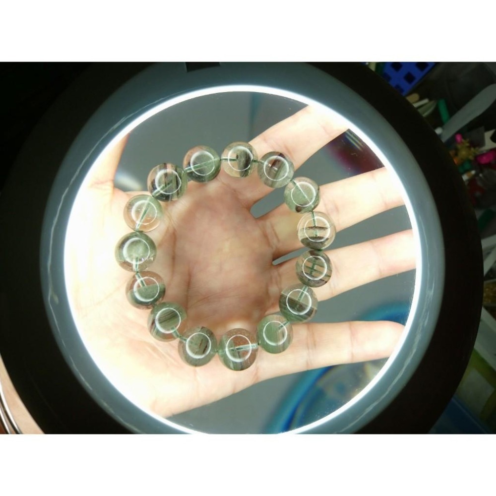 ㊣TiBi手趣㊣◆情牽水晶時刻舒心◆大咪數大磁場大串珠大顆粒14mm+天然半盆綠幽靈素串手串~手圍18-18.5cm