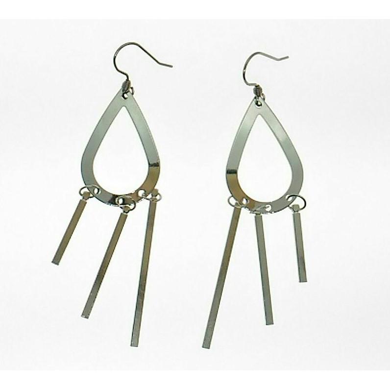 題ピ>防過敏316不銹鋼前衛金屬風格錐形水滴立體長條流蘇耳鈎耳釘耳環