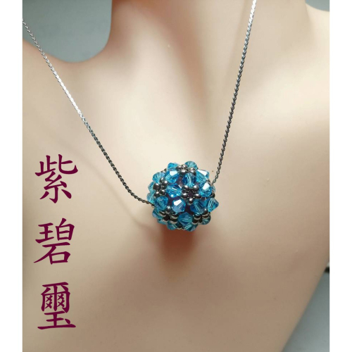吊墜:圓球大小:內碧璽14.5MM+外藍色水鑽串珠19.5MM