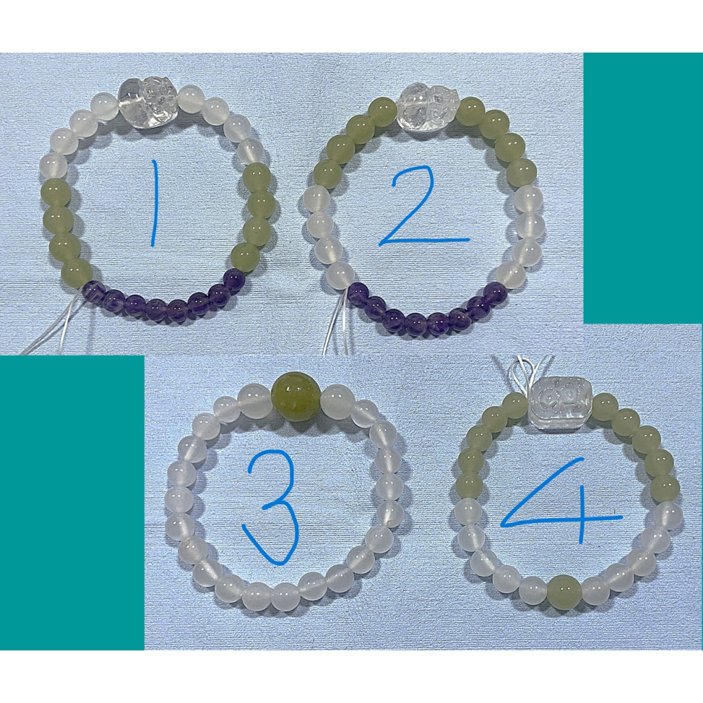 天然白水晶如意雕花貔貅瑪瑙碳酸鹽質玉紫水晶岫玉簡單設計款mm+手圍16-17cm