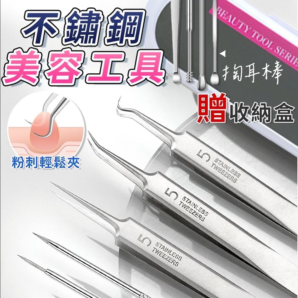 商品規格:挖耳棒4件組、粉刺夾4件組、波浪紋眉夾、5號直嘴夾/5號斜嘴夾/5號彎鉤夾
