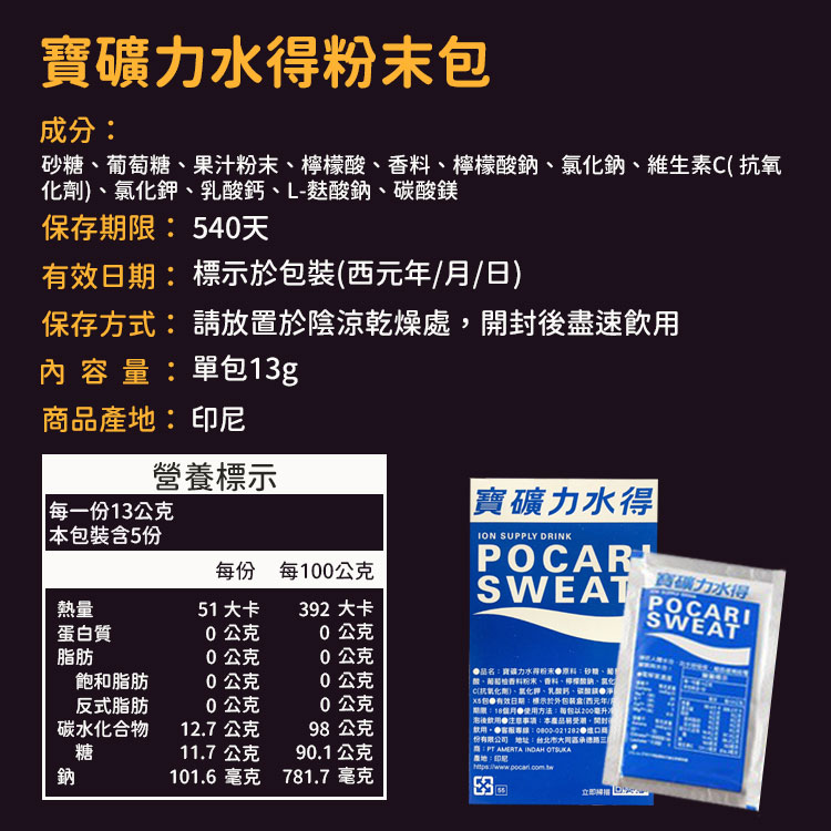 ▪商品內容物:寶礦力水得粉末