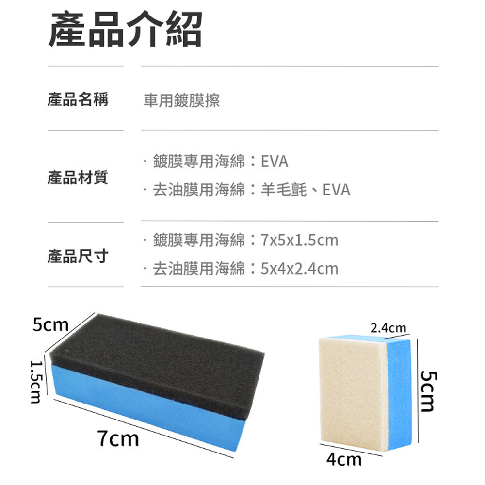 ‧ 鍍膜專用海綿:7x5x1.5cm