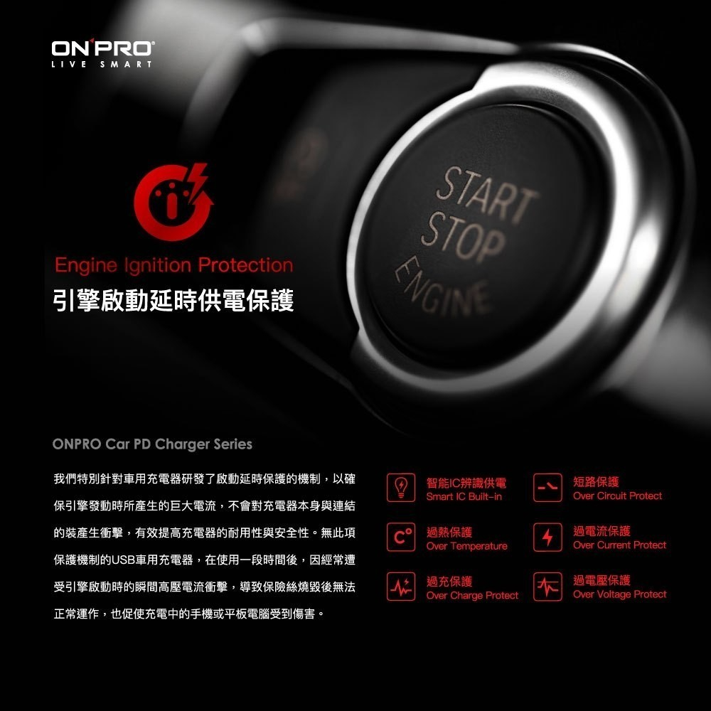 . 智能安全保護功能 :引擎啟動延遲保護 / 過熱/過充/過放/過高電流/過高電壓/ 短路保護/線損補償
