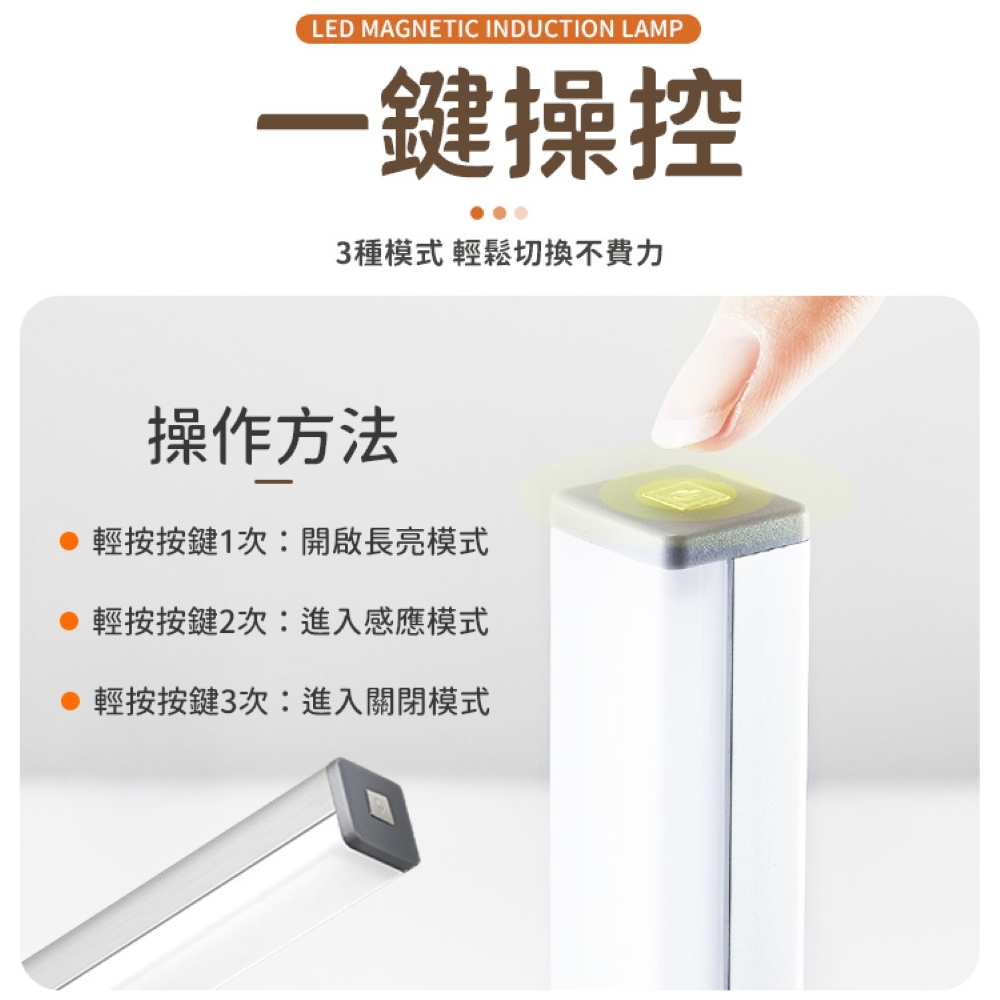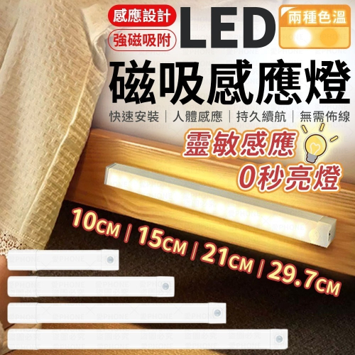 【商品特色】   🔥打開衣櫃、夜晚如廁、下班回家 人來即亮燈 無需再摸黑 🔥 ⭕️內置強磁 可吸附在有磁力的物品處或者使用附贈磁片上 穩固不掉落 ⭕️兩種光色可選擇 依照需求選擇帶來更好的照明體驗 ⭕️0秒感應 開燈不伸手 90度感應範圍 離開後自動熄滅 ⭕️無需佈線 磁條吸附 輕鬆安裝 ⭕️一鍵操控 三種模式 輕鬆切換不費力 【商品規格】 名稱:LED磁吸感應燈 材質:鋁合金+ABS+電鍍 尺寸:10cm|15cm|21cm|29.7cm 內容:LED感應燈x1、磁吸片x2、充電線x1、包裝盒x1 產地:中國 是否需要組裝:否 【款式介紹】 🔺10公分款🔺 🔵LED燈珠顆數│6顆 🔵燈光顏色│ 暖黃光 / 冷白光 🔵尺寸│ 10x1.85x1.7cm 🔵鋰電池容量│200mah ⎯⎯⎯⎯⎯ 🔺15公分款🔺 🔵LED燈珠顆數│ 10顆 🔵燈光顏色│ 暖黃光 / 冷白光 🔵尺寸│15x1.85x1.7cm 🔵鋰電池容量│380mah ⎯⎯⎯⎯⎯ 🔺21公分款🔺 🔵LED燈珠顆數: 14顆 🔵燈光顏色│ 暖黃光 / 冷白光 🔵尺寸│ 21x1.85x1.7cm 🔵鋰電池容量:450mah ⎯⎯⎯⎯⎯ 🔺29.7公分款🔺 🔵LED燈珠顆數: 20顆 🔵燈光顏色│ 暖黃光 / 冷白光 🔵尺寸│ 29.7x1.85x1.7cm 🔵鋰電池容量│450mah ⎯⎯⎯⎯⎯ ⚠️請勿將產品單獨給嬰幼童使用並請放置於孩童無法容易取得之處,以免發生危險。 ⚠️尺寸為手工測量,尺寸多少會有誤差,敬請見諒⚠️ ⚠️商品會因為解析度不同,造成圖片顏色呈現略有不同,請以實品顏色為準⚠️