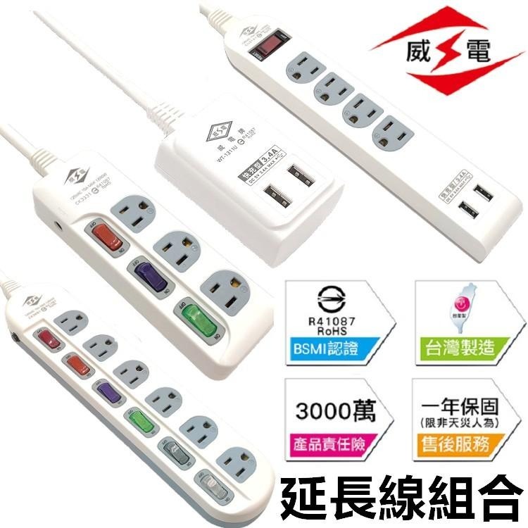 📍威電 1開3孔4插+雙USB輸出(3.4A快充) 電腦延長線-180公分