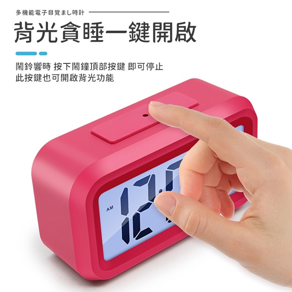 【商品特色】 🔥幸福晨起 即刻開始 時間管理So easy!!🔥 ⭕️走時靜音無噪音 告別機械鬧鐘滴答聲 安心入眠 ⭕️背光貪睡一件開啟 響時按下即停 也可開啟背光功能 ⭕️內置智能溫度傳感器 隨時為你顯示當前環境的溫度高低 ⭕️按下鬧鐘頂部按鍵 開啟屏幕背光 昏暗環境下柔和不傷眼 【商品規格】 名稱:多功能電子鬧鐘 材質:ABS+LCD液晶顯示屏 規格:白色|黑色|桃紅|粉色 尺寸:13.5x4.5x7.5cm 內容:一入(無附電池,電池需另外購買) 電池種類:AAA四號電池-三顆 產地:中國 是否需要組裝:否 ⚠️請勿將產品單獨給嬰幼童使用並請放置於孩童無法容易取得之處,以免發生危險。 ⚠️尺寸為手工測量,尺寸多少會有誤差,敬請見諒⚠️ ⚠️商品會因為解析度不同,造成圖片顏色呈現略有不同,請以實品顏色為準⚠️