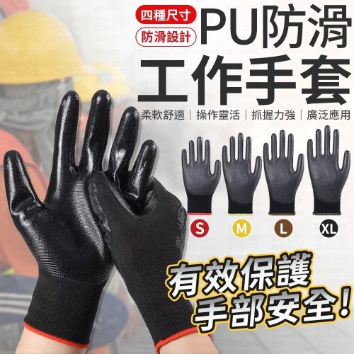 PU防滑工作手套 PU塗層手套 止滑手套 耐磨手套 工作手套 黑色手套 工地手套 防滑手套 搬運手套 手套 沾膠手套