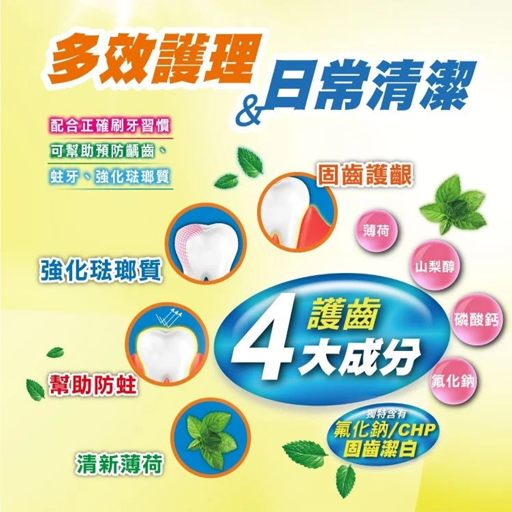 商品成分:磷酸氫鈣、碳酸鈣、山梨醇液、甘油、純水、十二烷基硫酸鈉、二氧化矽、薄荷香料、L-薄荷醇、羧甲基纖維素、糖精鈉、氟化鈉、羥乙基纖維素、(蕾明皓:丙二醇、西洋耆草抽出物、杜松子抽出物、蕁麻抽出物、已二烯酸鉀)、單氟磷酸鈉。(總含氟量約1250ppm)
