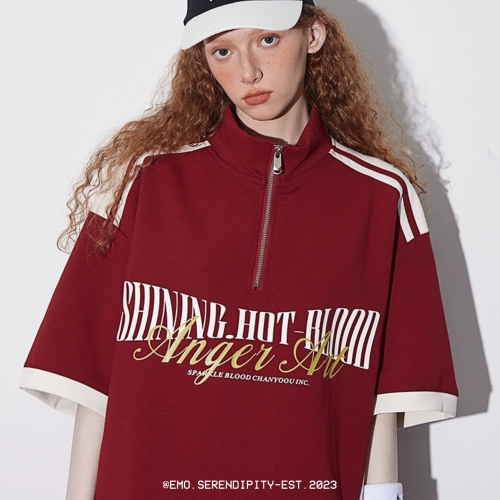 這款上衣採用了半高領拉鍊設計 簡約時尚