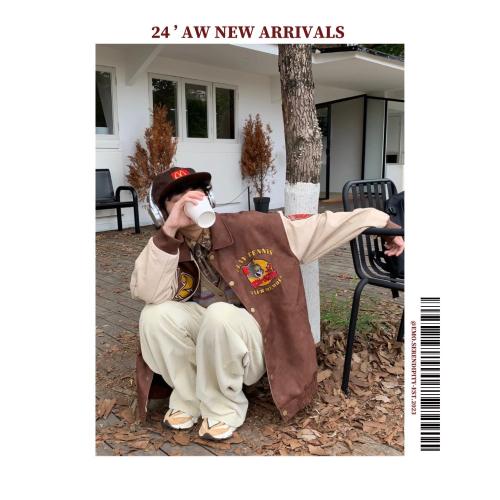 ☺︎ EMO41126ㅣ美式復古湯姆傑利刺繡PU皮夾克