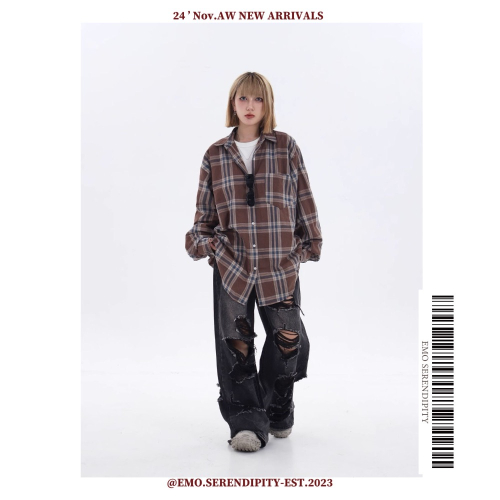 ☺︎ EMO41212ㅣ美式復古格紋廓形棉質襯衫
