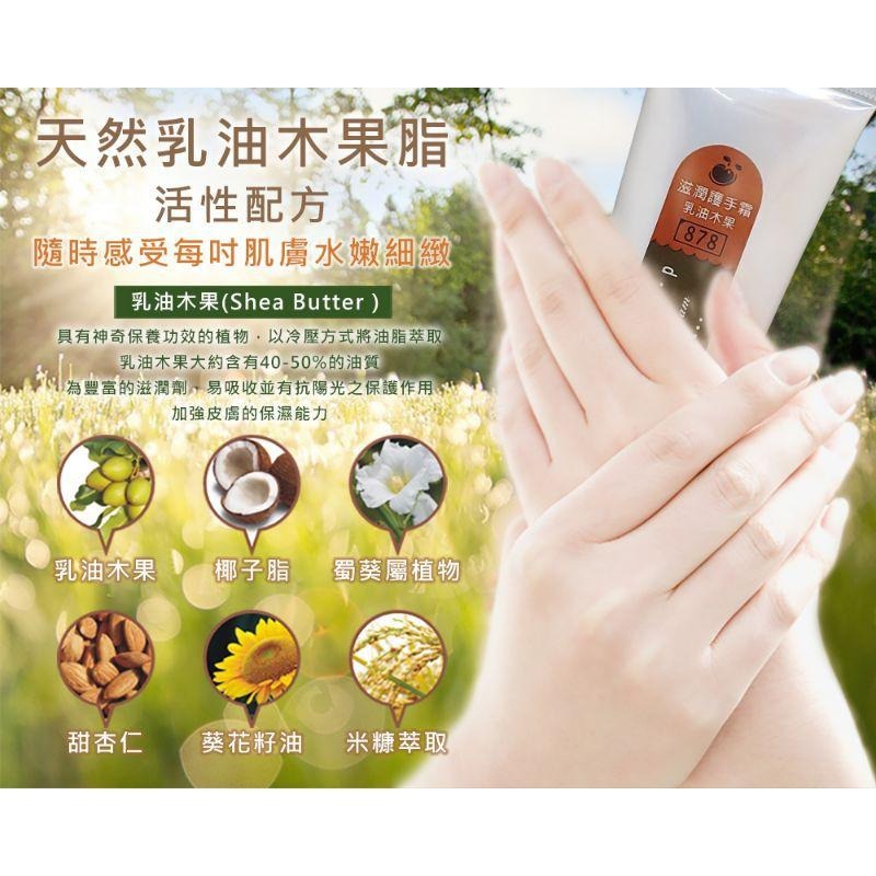 {乳油木果護手霜} 產品特色: [高效絲綢不粘膩質地滋潤修護] ◆乳油木果護手霜植萃乳油木果,質地清爽好吸收,能有效修護及舒緩緊繃疲憊肌膚,給予雙手柔嫩滋潤,快速形成水潤保護膜。 主要成份: 乳油木果油、檸檬馬鞭草精油、椰子脂、蜀葵屬植物、甜杏仁、葵花籽油、米糠萃取、阿爾卑斯山高滲透冰河水、北非撒哈拉沙漠黃苜蓿 用途功效: 絲滑般柔嫩質感,隨時感受每吋肌膚水嫩細緻 特殊植萃乳果脂活性配方,能有效修護、柔嫩、滋潤以及呵護細緻雙手,可輕易地增加肌膚潤滑度,確保雙手的水嫩與自然保護膜,隨時享受乳油木果的植物淡雅香氣。 使用建議:取適量於雙手、雙肘雙臂間輕輕搓揉,即可快速滲透肌膚,可隨時取用,建議搭配護手手套效果更佳。 ------------------------------------------------------------------------------------------------------------------------------------------------------------------------------------------------------------------------------------------- {薰衣草護手霜} 產品特色: [高效絲綢不粘膩質地滋潤修護] ◆薰衣草精油護手霜,質地清爽好吸收,能有效修護及舒緩緊繃疲憊肌膚,給予雙手柔嫩滋潤,快速形成水潤保護膜。 主要成份: 薰衣草精油、乳油木果油、椰子脂、蜀葵屬植物、甜杏仁、葵花籽油、米糠萃取、阿爾卑斯山高滲透冰河水、北非撒哈拉沙漠黃苜蓿 用途功效: 絲滑般柔嫩質感,隨時感受每吋肌膚水嫩細緻 特殊植萃乳果脂活性配方,能有效修護、柔嫩、滋潤以及呵護細緻雙手,可輕易地增加肌膚潤滑度,確保雙手的水嫩與自然保護膜,隨時享受薰衣草精油的淡雅香氣。 使用建議:取適量於雙手、雙肘雙臂間輕輕搓揉,即可快速滲透肌膚,可隨時取用,建議搭配護手手套效果更佳。 ------------------------------------------------------------------------------------------------------------------------------------------------------------------------------------------------------------------------------------------- 薔薇/田園水嫩護手霜 (60gm) 產品特色: ◆薔薇 富含薔薇香氛的植萃精華,含大量保濕因子,預防乾裂、增加潤滑度,可保護及滋潤工作後粗糙的雙手,加強手部保濕、潤澤修護,使手部皮質不過度乾澀,讓雙手持續的潤滑與柔軟 ◆田園 自然持久田野原始香氛,富含保濕因子,能有效滋養皮膚,並迅速深入角質層補充水份,能改善皮膚缺水的現象,讓雙手持久地擁有滋潤感,保養乾裂、粗糙的手部肌膚,輕鬆呵護肌膚。 主要成份: ◆薔薇 乳油木果、乳酸鈉、保濕劑、甜沒藥帖醇、尿囊素、葛根萃取、脯氨酸、大馬士革薔薇 ◆田園 乳油木果、乳酸鈉、保濕劑、甜沒藥帖醇、尿囊素、樹苔精油、檸檬精油、葛根萃取、脯氨酸用途功效:◆薔薇#876 薔薇香氛的優美氣息來自彈指間,輕鬆呵護嬌貴雙手富含薔薇香氛的植萃精華含大量保濕因子,預防乾裂、增加潤滑度,可保護及滋潤工作後粗糙的雙手,加強手部保濕、潤澤修護,使手部皮質不過度乾澀,讓雙手持續的潤滑與柔軟。 ◆田園 散發田野原始的生命力,給予手指最豐富的滋潤富含保濕因子,能有效滋養皮膚,並迅速深入角質層補充水份,能改善皮膚缺水的現象,讓雙手持久地擁有滋潤感,保養乾裂、粗糙的手部肌膚,輕鬆呵護肌膚。 使用建議:隨時取適量於雙手、雙肘雙臂間輕輕搓揉,即可快速滲透肌膚。