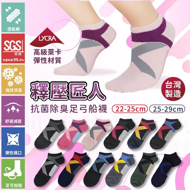 商品名稱:釋壓匠人抗菌除臭足弓船襪