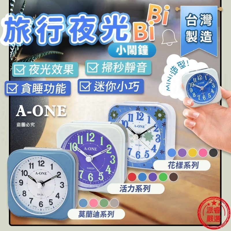台灣製造【A-ONE 旅行夜光BiBi小鬧鐘】夜光 靜音小鬧鐘 貪睡 大鈴聲 小夜燈 可愛小巧【LD1155】