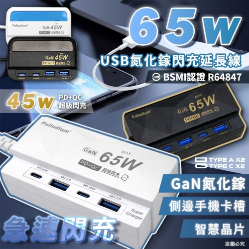 ◆品名:Palladium 45W USB氮化鎵閃充延長線4孔