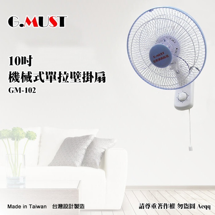 【G.MUST 台灣通用】10吋單拉壁掛扇(GM-102)