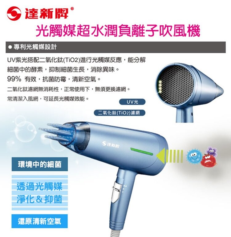 【TAHSIN 達新牌】光觸媒超水潤負離子吹風機(TS-6660)