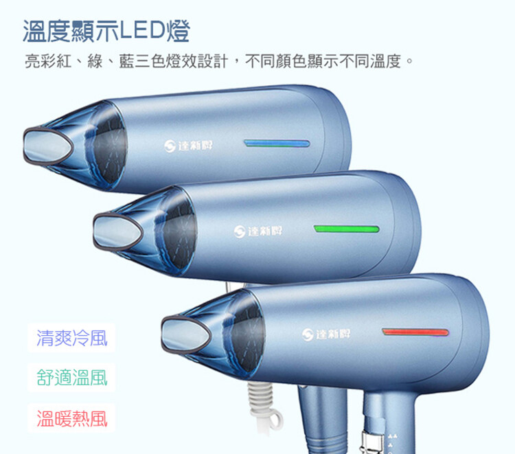 【紅燈→熱風77度】【綠燈→溫風55度】【藍燈→冷風30度】