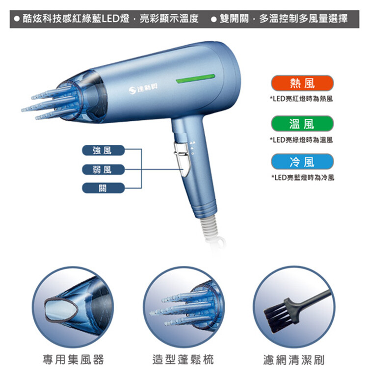 附專用集風器/造型蓬鬆梳/濾網清潔刷