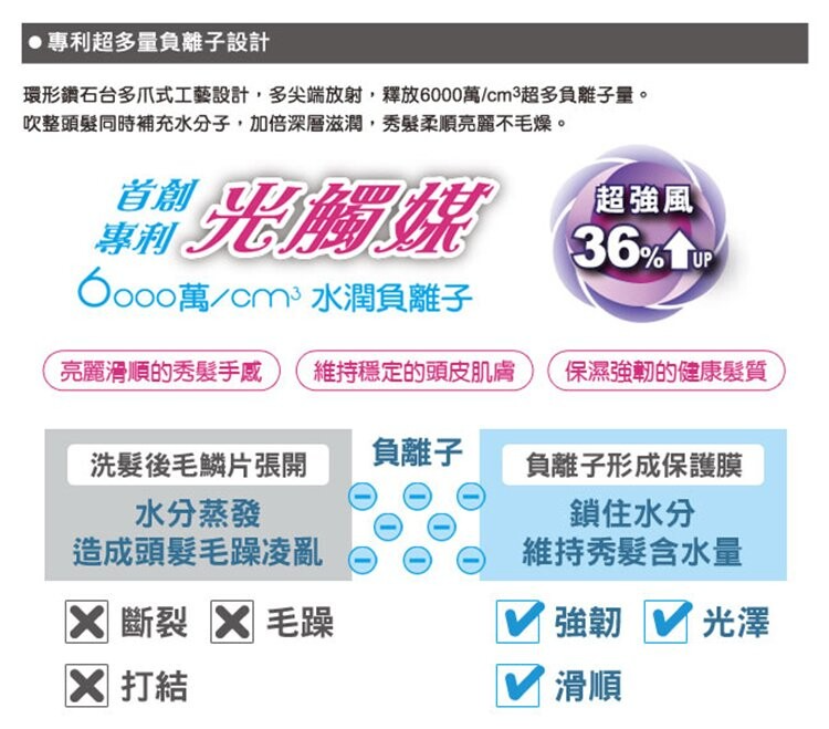 ION負離子量:6000萬個/Cm3