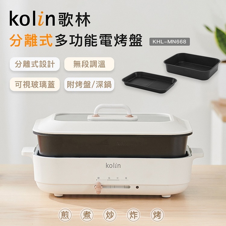 【Kolin 歌林】分離式多功能電烤盤/電火鍋/美食鍋/鐵板燒(KHL-MN668)