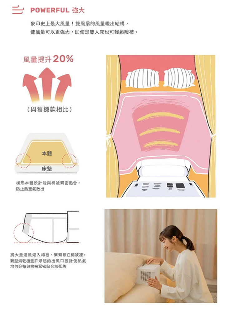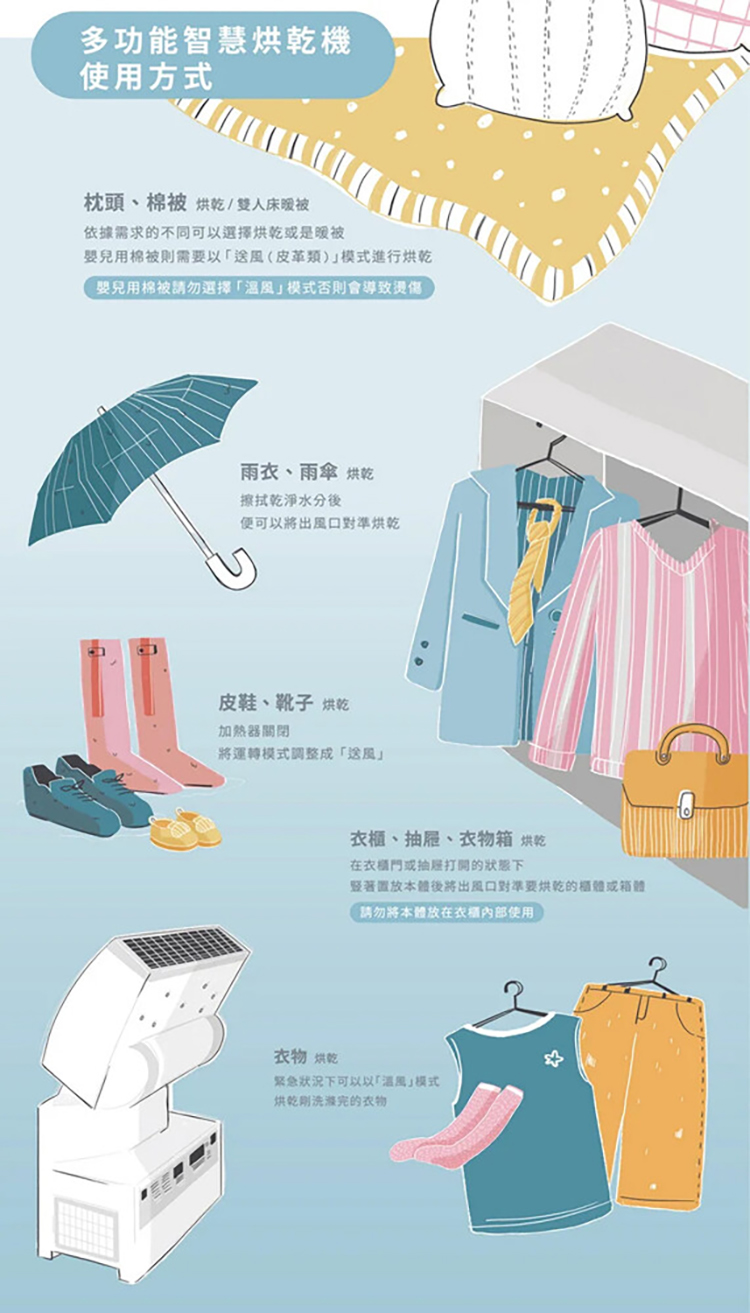 不需軟管及烘被袋,滿足多元烘乾需求