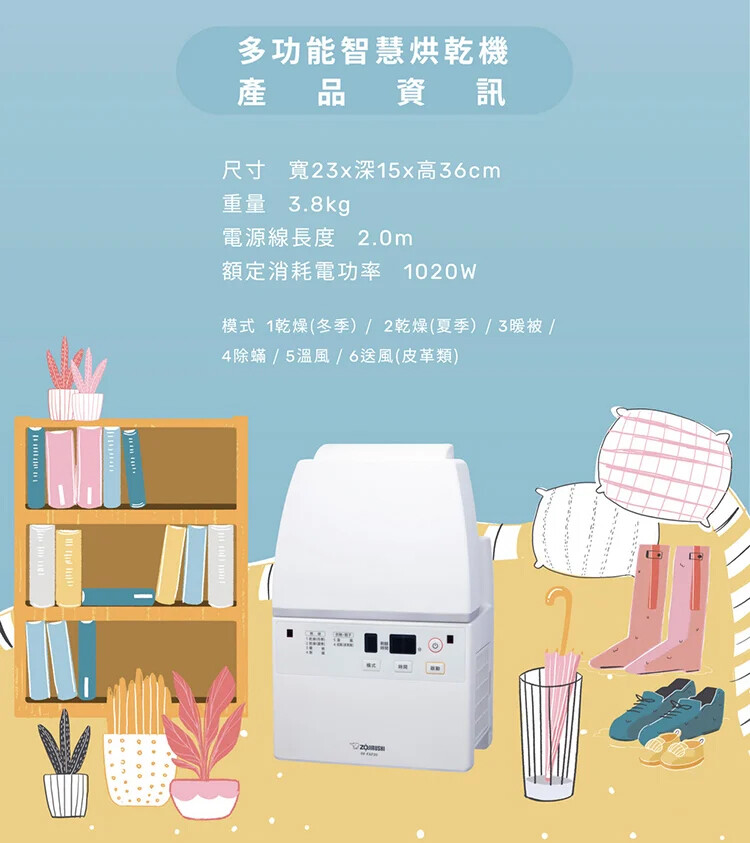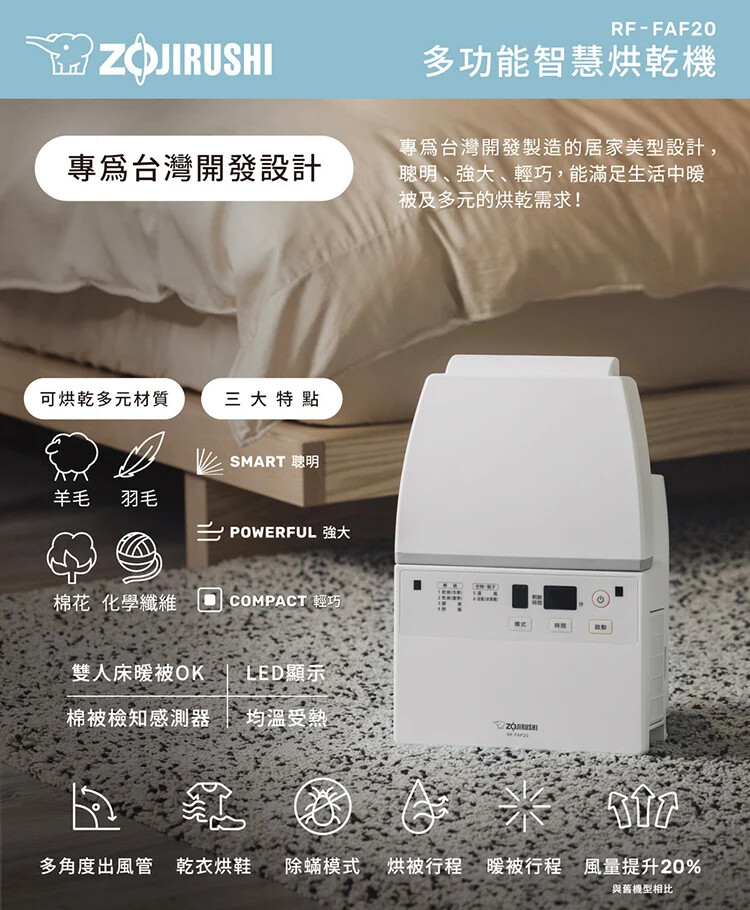 【ZOJIRUSHI 象印】多功能智慧烘乾機(RF-FAF20)