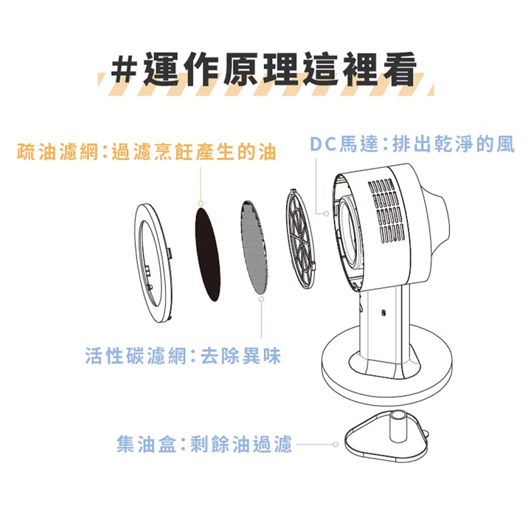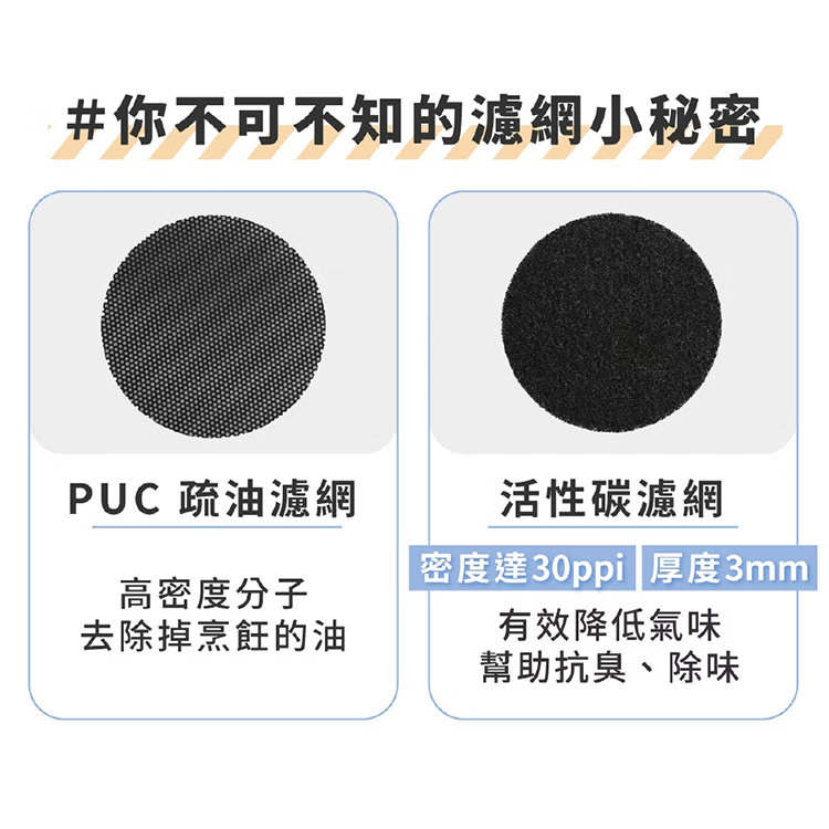 配件:Type-C 充電線x1,疏油濾網x2,活性碳濾網x2,說明書