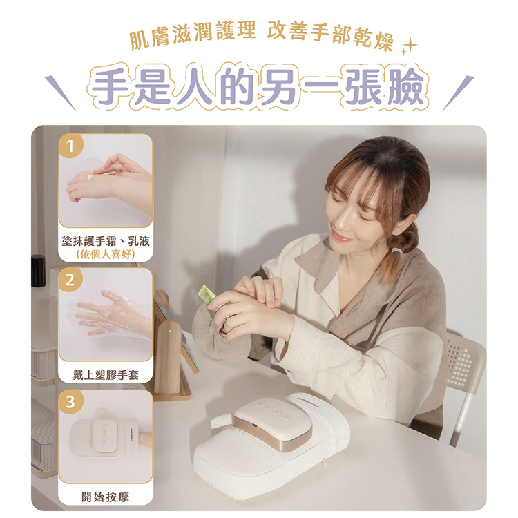 三檔模式:保健模式(全手),活力模式(手掌+手腕),舒緩模式(手掌+手指)