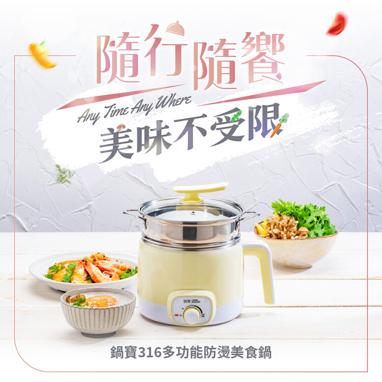 【CookPower 鍋寶】1.7L 316不鏽鋼多功能防燙美食鍋(BF-9311YW)黃色/附蒸籠