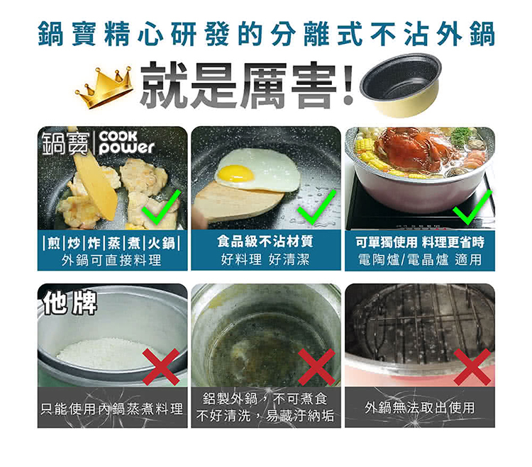 分離式外鍋可直接在鍋內料理食物,美味更升級