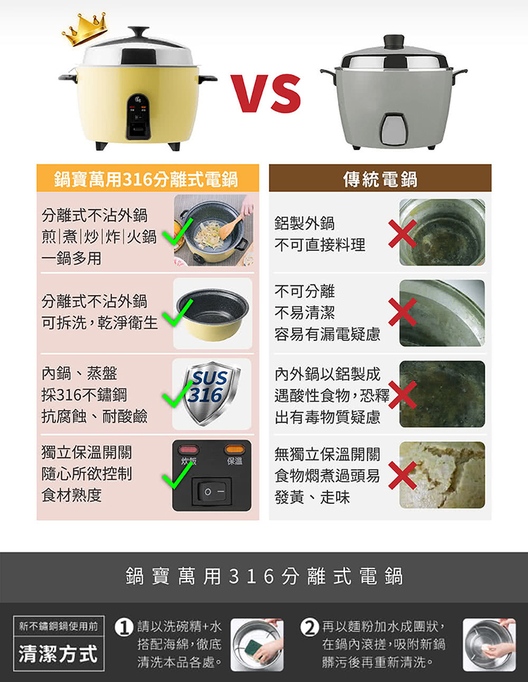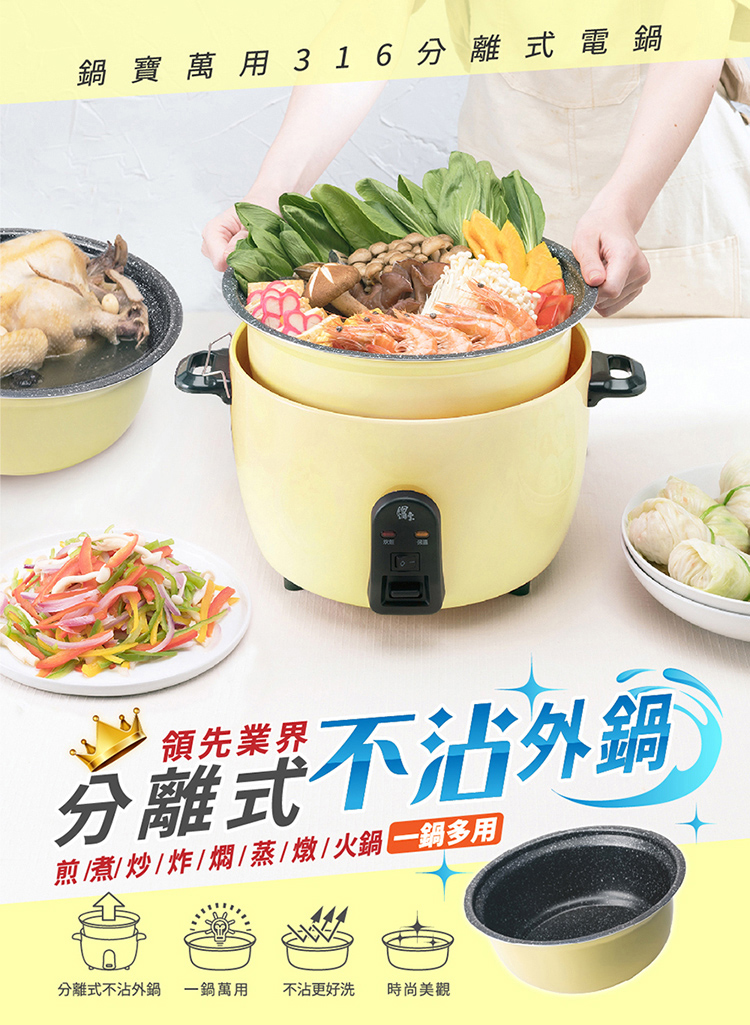 外鍋採分離式設計,好清易潔 拆洗更方便