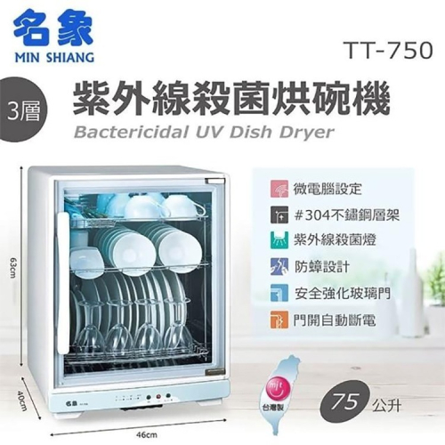 【MIN SHIANG 名象】75L三層紫外線殺菌烘碗機(TT-750)飛利浦燈管
