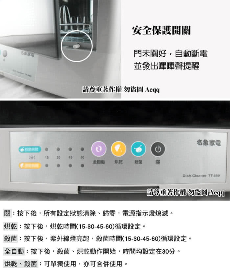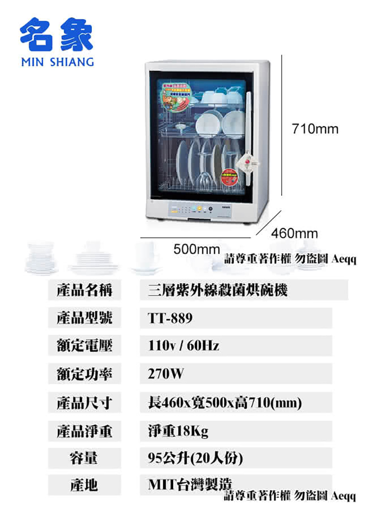 【MIN SHIANG 名象】三層紫外線殺菌烘碗機(TT-889)