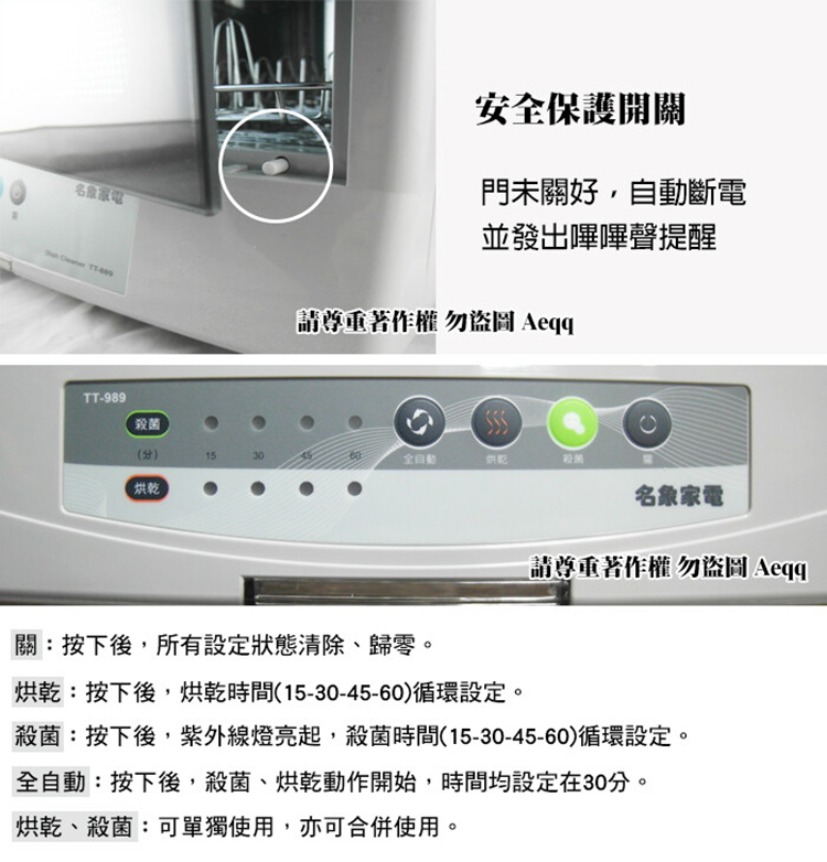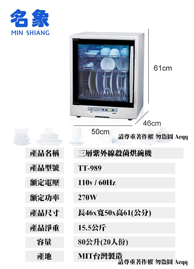 【MIN SHIANG 名象】三層紫外線殺菌烘碗機(TT-989)