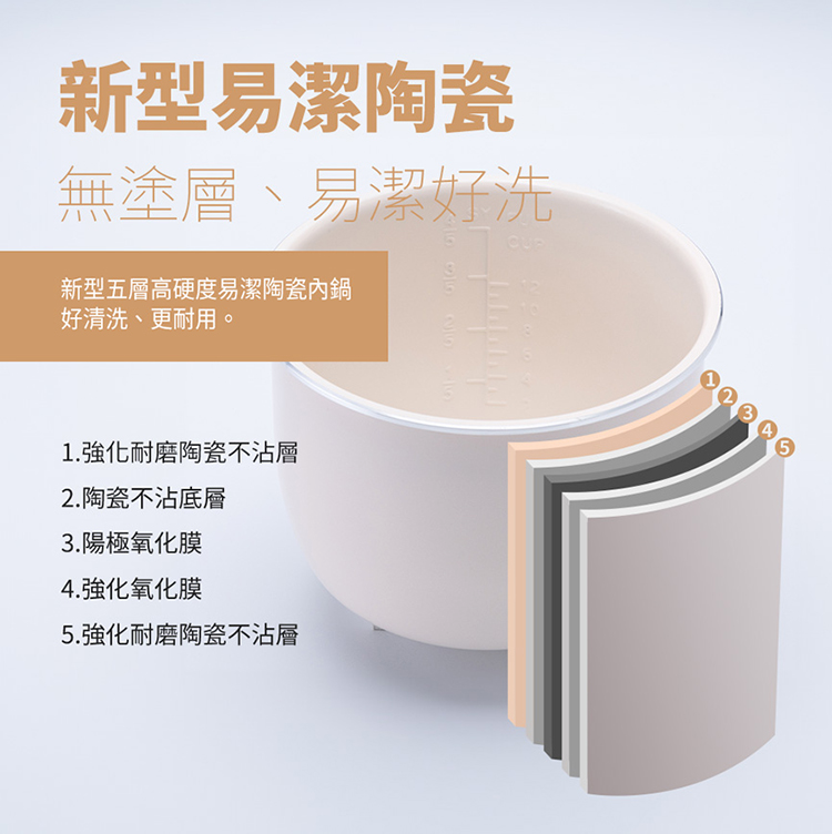 附件:陶瓷內鍋x1、玻璃鍋蓋x1、量杯x1、飯匙x1、電源線x1、說明書x1