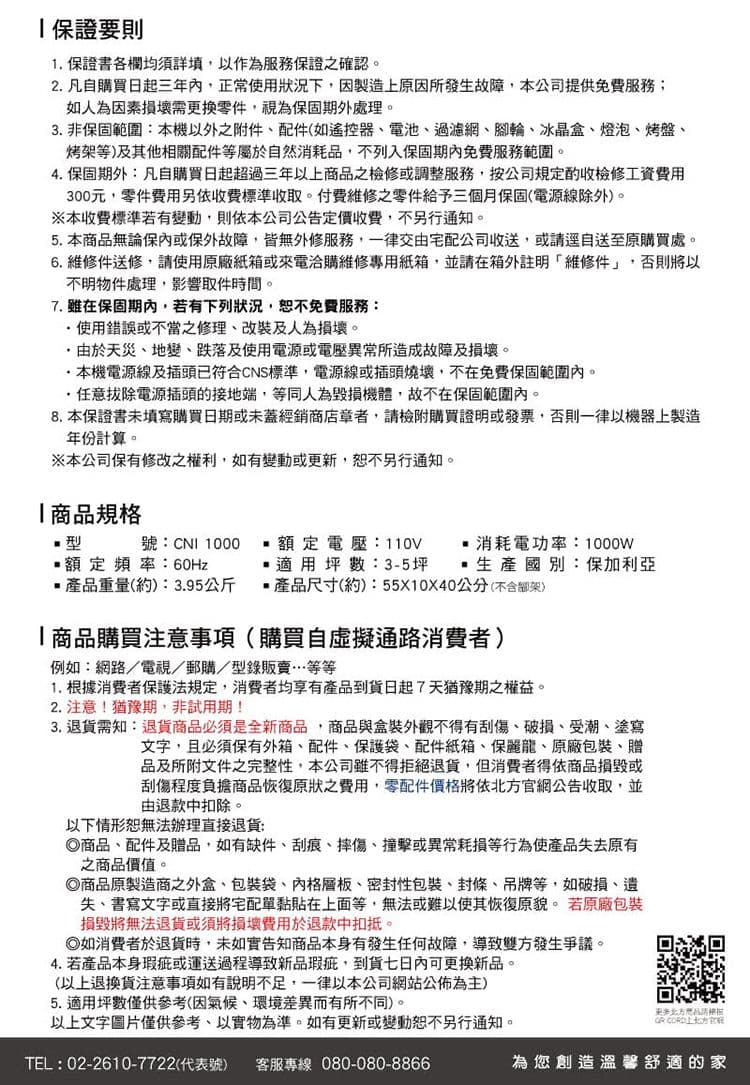 【NORTHERN 北方】第三代微電腦對流式電暖器房間/浴室兩用(CNI1000)