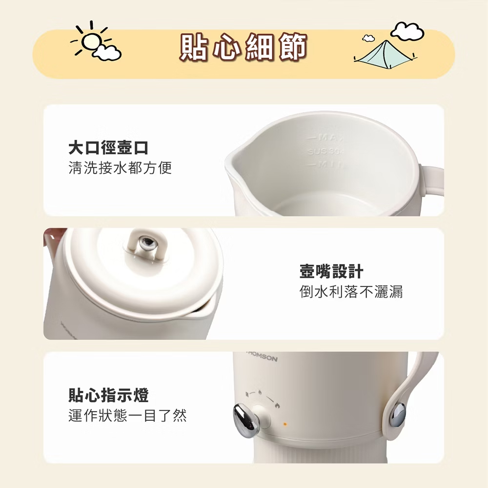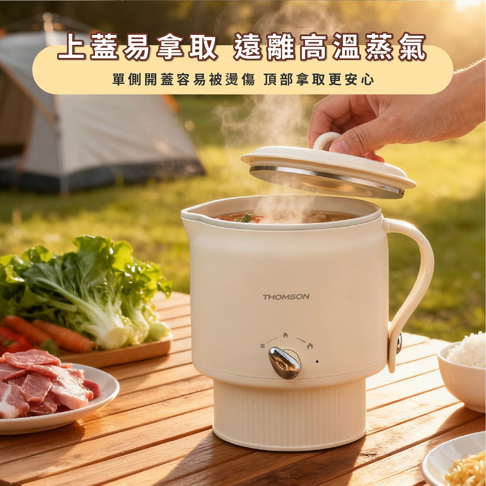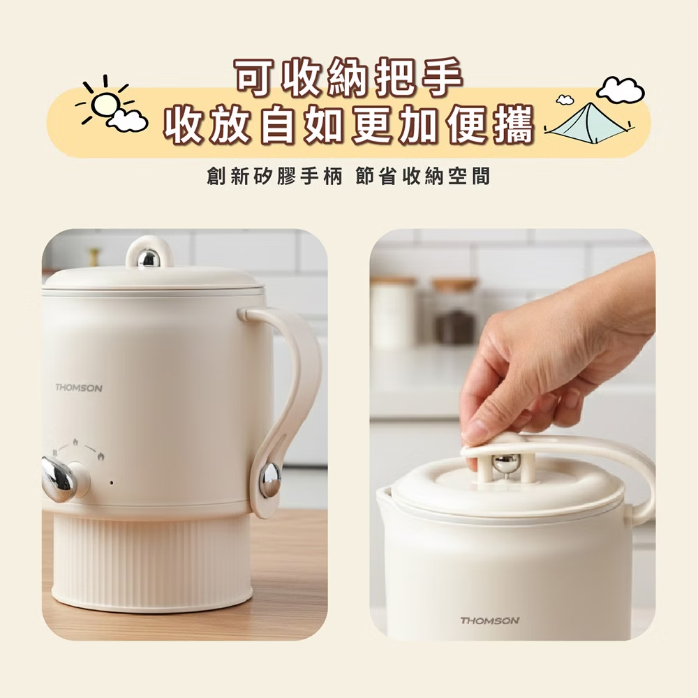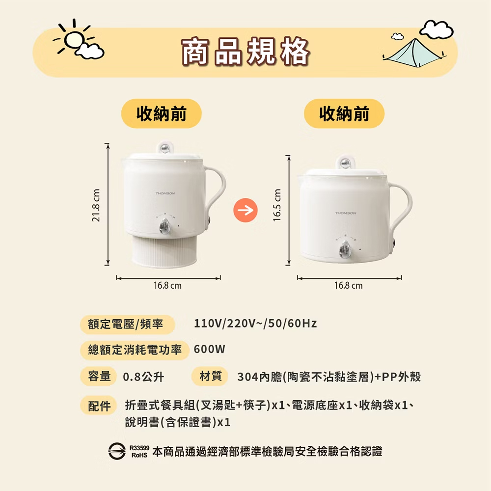 【THOMSON】304陶瓷雙電壓防燙旅行美顏鍋 奶油白(TM-SAK66)