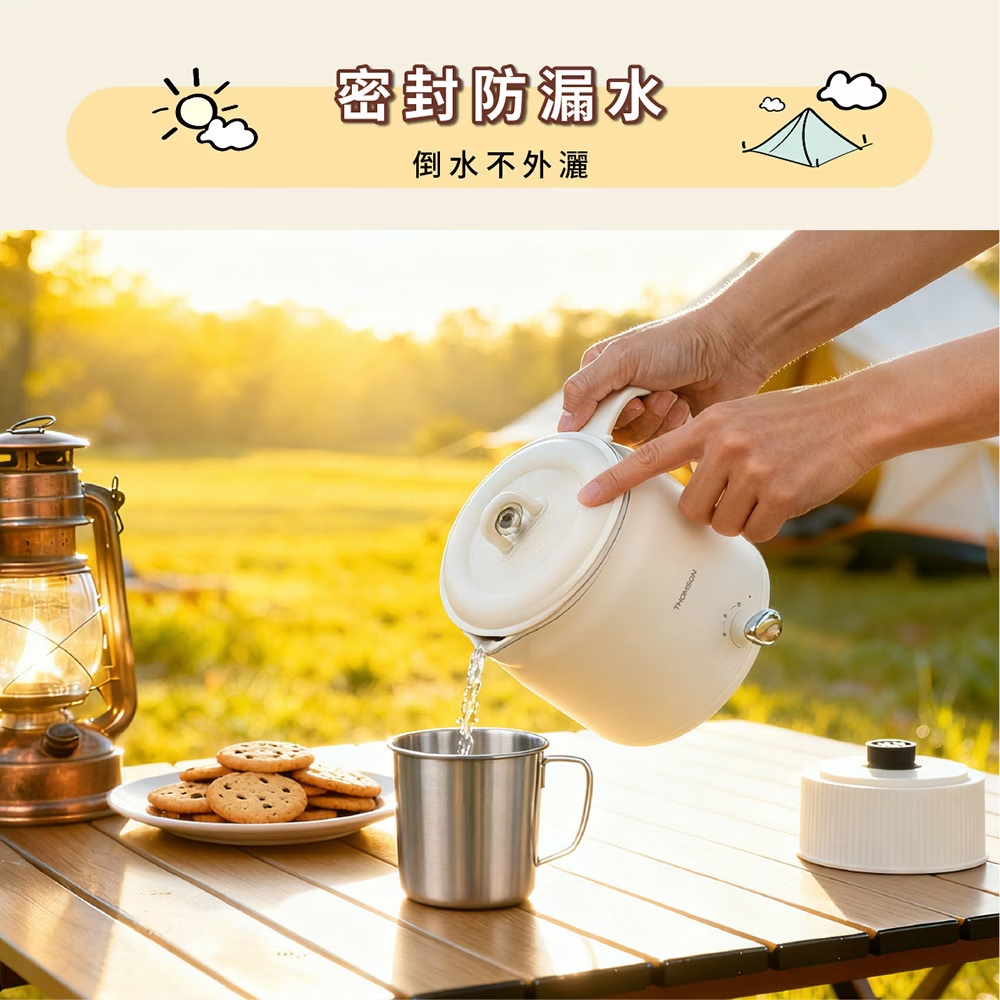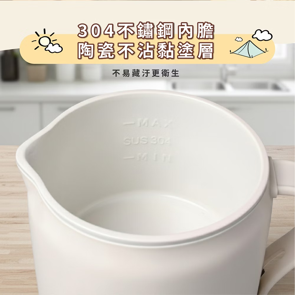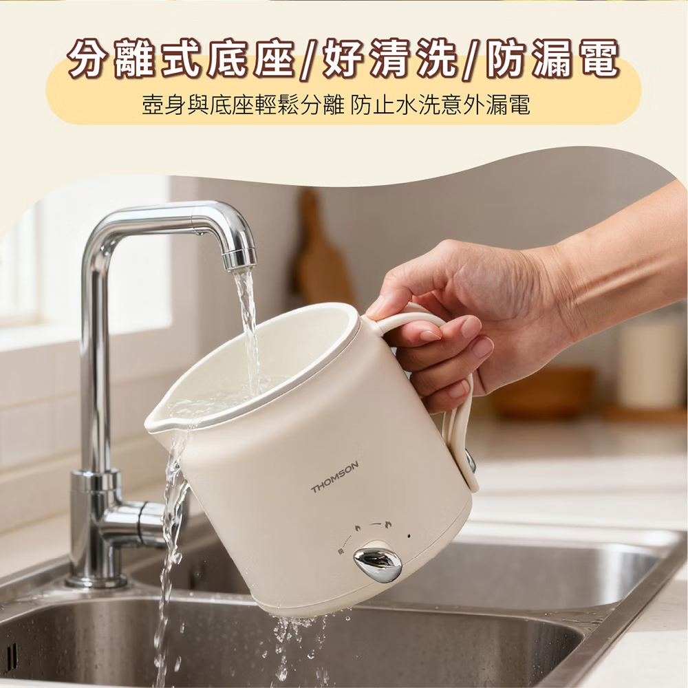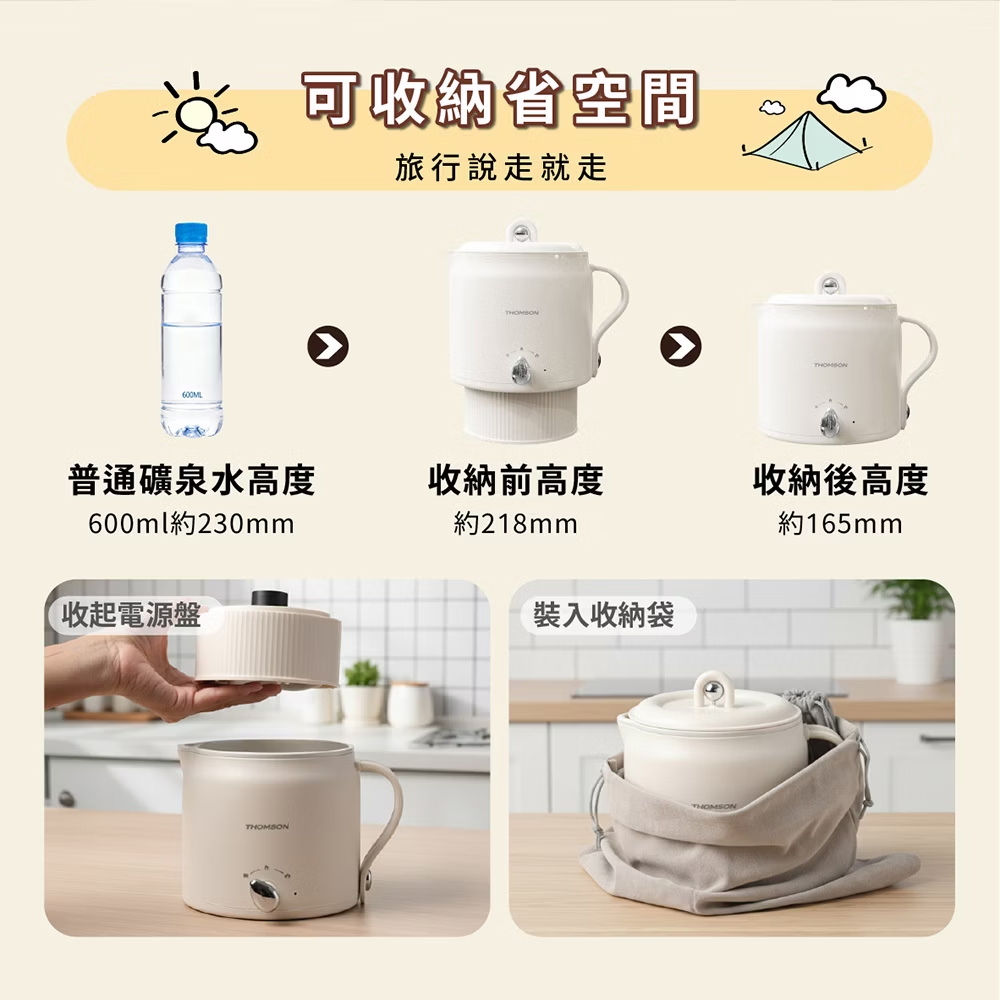【THOMSON】304陶瓷雙電壓防燙旅行美顏鍋 奶油白(TM-SAK66)