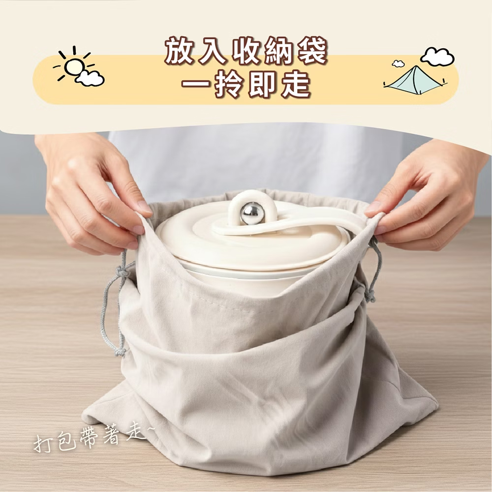 配件:主機、說明書、可收納餐具組(叉湯匙+筷子+收納袋)、收納袋,以上各1