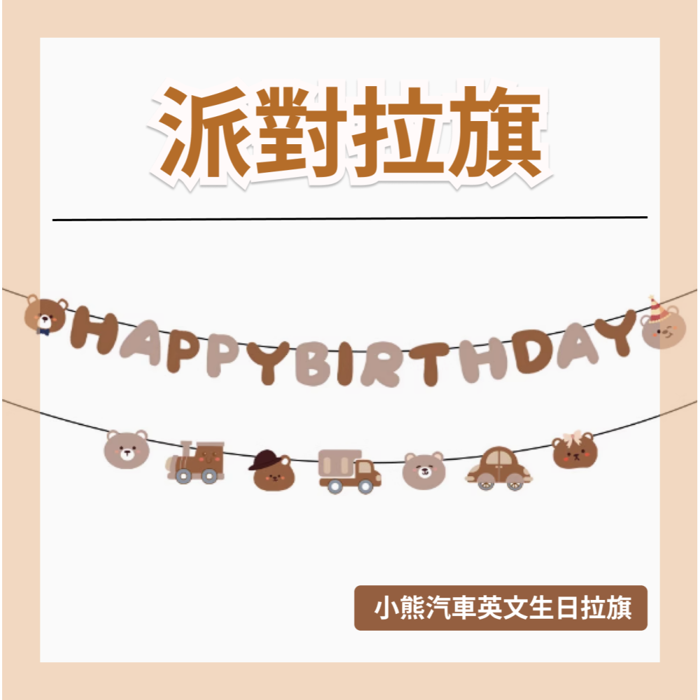 小熊生日拉旗 可愛復古 棕咖色 卡通彩旗 男孩女孩 兒童派對 裝飾場景佈置