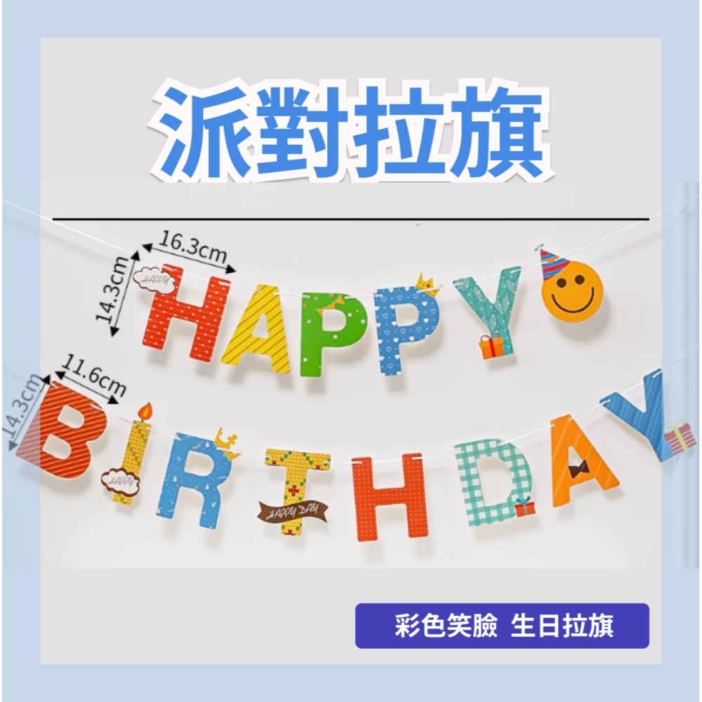 彩色笑臉 ღ 生日派對 烘焙蛋糕 裝飾擺設 插旗拉旗 卡通飛機工程車 太空人 彩旗橫幅拉旗