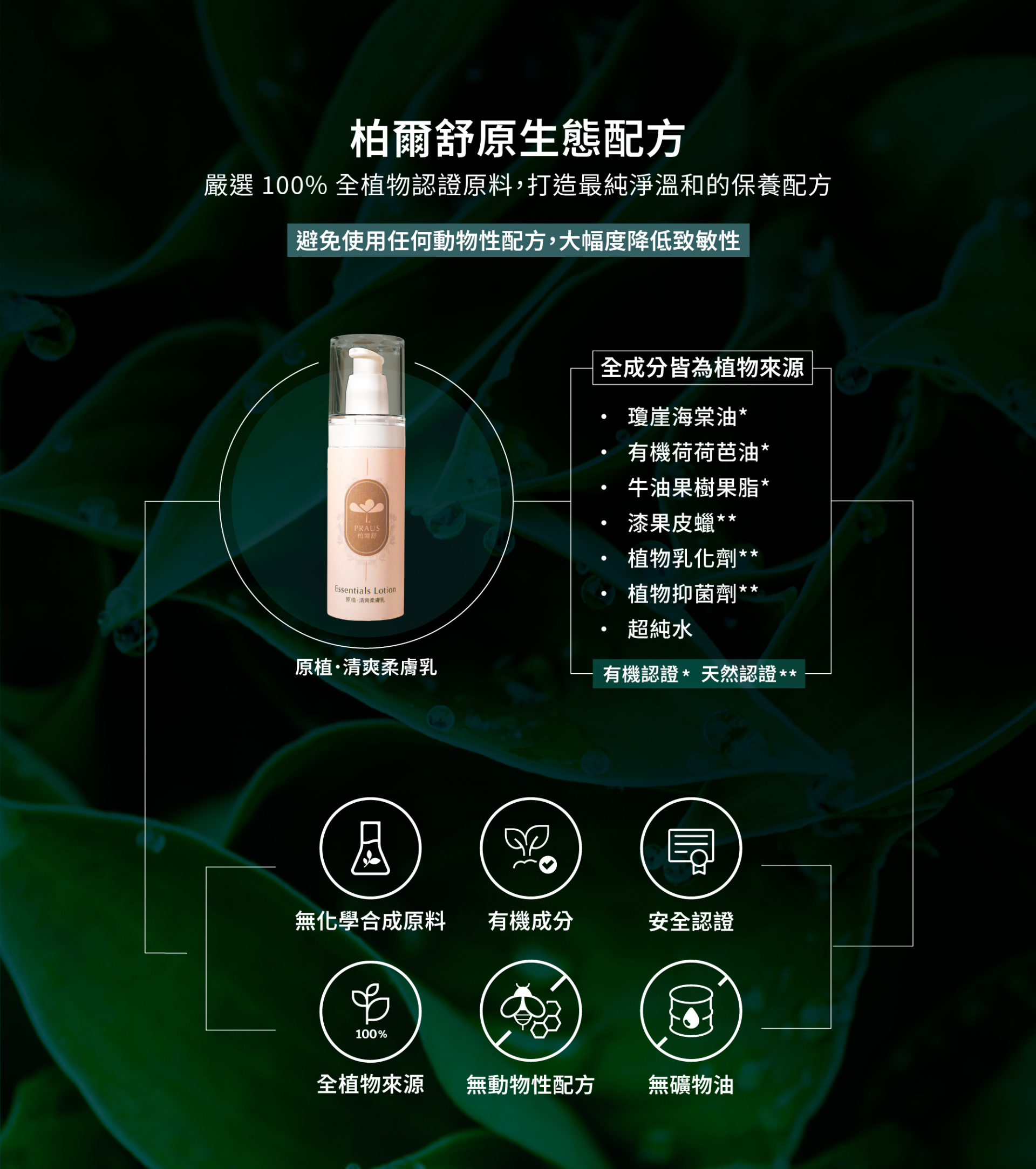 | 100% 純素產品 | 有機/天然認證原料 |