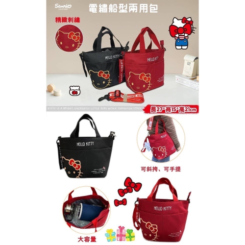 三麗鷗電繡船型輛兩用包紅色/黑色 後背包 手拿包 兩用包 收納包 晚宴包 零錢包 彩妝包